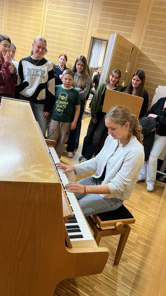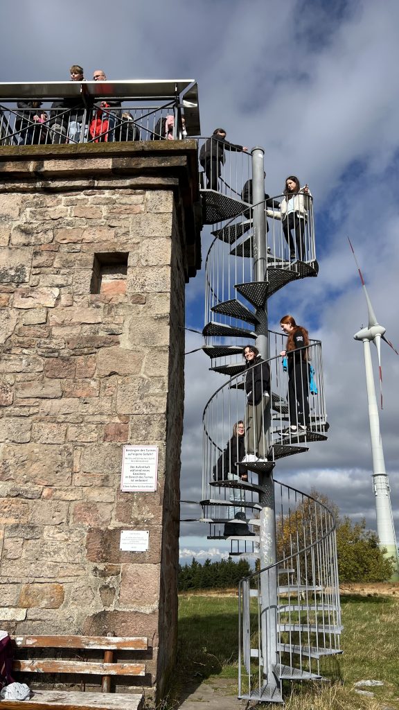 Die Irinnen vom Regina Mundi College in Cork besuchten uns im Rahmen des Irland-Austauschs am Gymnasium Achern. Am Freitagabend wurden die Irinnen bei ihrer Ankunft von Frau Weber, Herrn Heimer und den Schülerinnen herzlich begrüßt. So konnten wir uns am Samstag bei einer gemeinsamen Wanderung auf die Hornisgrinde kennenlernen – ein perfekter Auftakt bei strahlendem Herbstwetter. Das Wochenende verbrachten die irischen Gäste in ihren Gastfamilien und hatten viele unterschiedliche Aktivitäten auf dem Plan, wie z.B. Besichtigungen von Burgen und Städten wie Karlsruhe oder Baden-Baden, ein Spieleabend, Escape Room, die Winzer-Kirwi oder ein Restaurantbesuch. Am Montag begann der Schulalltag, sowohl für die Deutschen als auch für die Irinnen. Nach der offiziellen Begrüßung im Musikpavillon konnten unsere Gäste den Unterricht miterleben, und am Nachmittag sorgte ein gemeinsamer Abend mit der Gruppe beim Kegeln, Pizzaessen und Pub Quiz für viel Spaß.