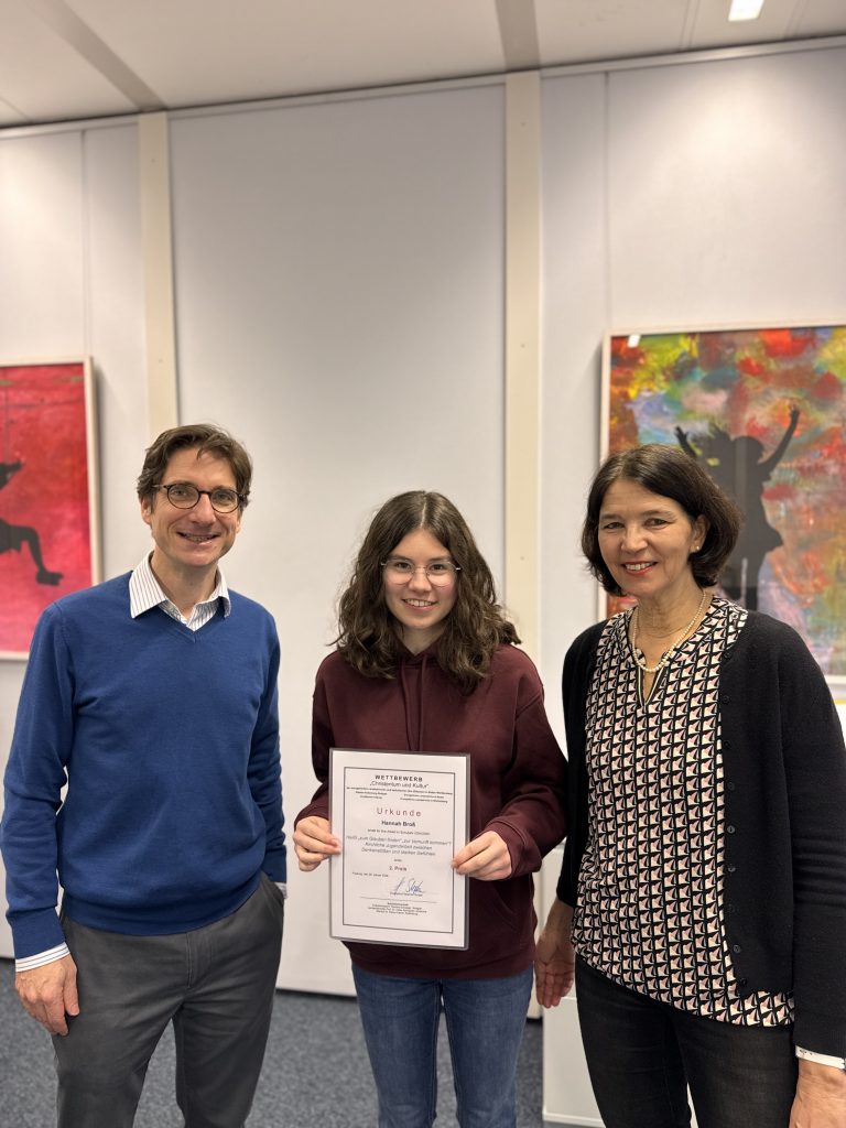 Für Ihre hervorragend wissenschaftlich recherchierte und mit quantitativen und qualitativen Untersuchungsmethoden versehene Arbeit erhielt Hannah Broß den zweiten Preis des Wettbewerbs.
