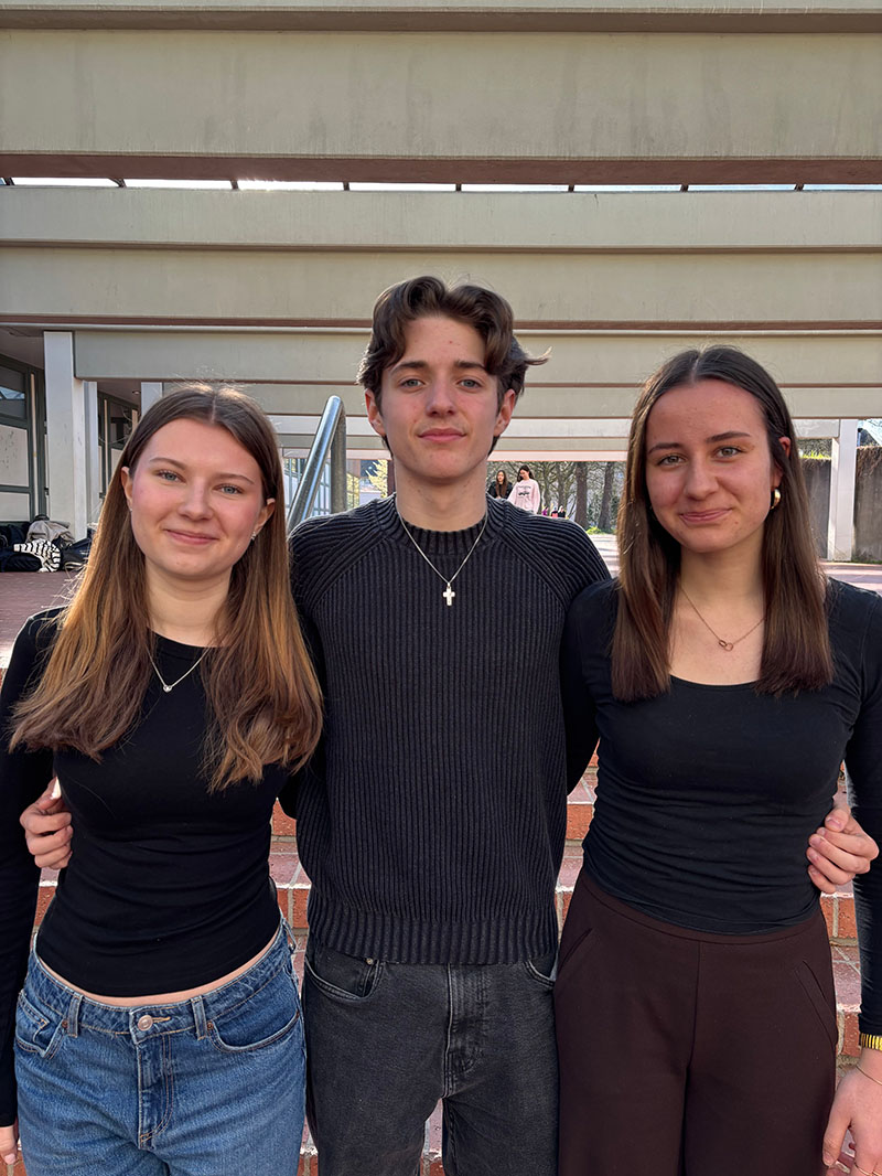 Deine Schülersprecher:innen: Mila Sucher, Elia Ziborius und Violetta Steinmetz